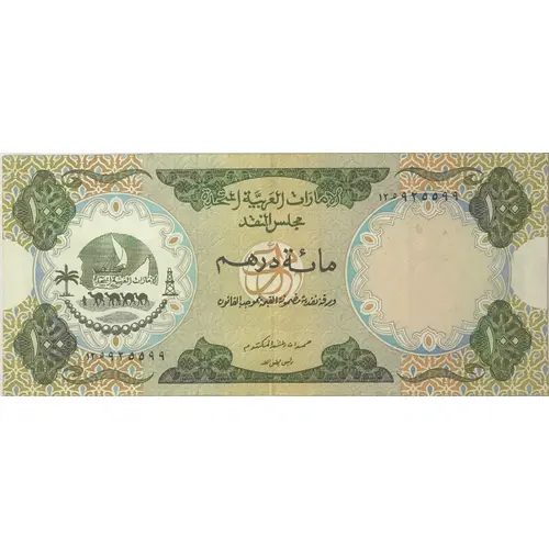 UNITED ARAB EMIRATES CURRENCY BOARD 100 ONE HUNDRED DIRHAMS AJMAN ABU-DHABI DUBAI SHARJAH RAS AL KHAIMA AJMAN UM AL QIWAIN FUJEIRA ABU-DHABI SHARJAH DE LA RUE |