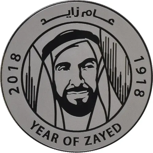 | Obverse lettering | عام زايد 2018 1918 YEAR OF ZAYED |