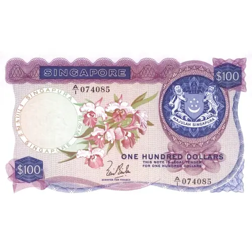 Obverse lettering SINGAPORE MAJULAH SINGAPURA ONE HUNDRED DOLLARS THIS NOTE IS LEGAL TENDER FOR ONE HUNDRED DOLLARS