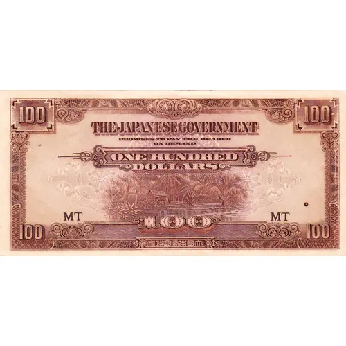 THE JAPANESE GOVERNMENT PROMISES TO PAY THE BEARER ON DEMAND ONE HUNDRED DOLLARS 府政國帝本日大 |