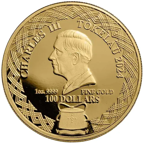 | 正面铭文 | CHARLES III TOKELAU 2024 DT 1 OZ .9999 FINE GOLD 100 DOLLARS TOKELAU MO TE ATUA |