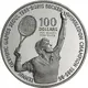 | Reverse lettering | TENNIS OLYMPIC GAMES SEOUL 1988 · BORIS BECKER WIMBLEDON CHAMPION 1985-86 100 DOLLARS FIVE OUNCES FINE SILVER |