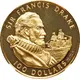 | Reverse lettering | SIR FRANCIS DRAKE 100 DOLLARS 900/1000 FM FINE GOLD |