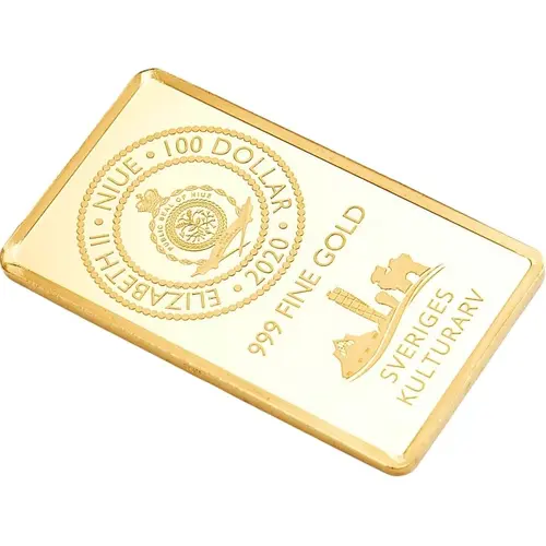 | Légende de l’avers | ELIZABETH II · NIUE · 100 DOLLAR PUBLIC SEAL OF NIUE ATUA NIUE TUKULAGI · 2020 · 999 FINE GOLD SVERIGES KULTURARV |