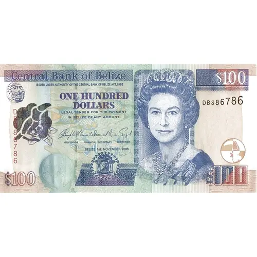 Central Bank of Belize One Hundred Dollars BIRDS OF BELIZE $100 THOMAS DE LA RUE AND COMPANY LIMITED |