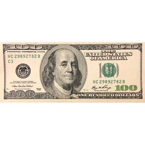 FEDERAL RESERVE NOTE THE UNITED STATES OF AMERICA THIS NOTE IS LEGAL TENDER FOR ALL DEBTS, PUBLIC AND PRIVATE ONE HUNDRED DOLLARS |