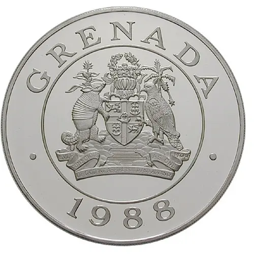 Historical Context: Grenada in 1988 was a parliamentary democracy within the Commonwealth, with Queen Elizabeth II as head of state. Following the political turbulence of 1983, this era focused on national rebuilding and identity assertion. The substantial 100 Dollars silver issue, featuring the endemic Grenada dove, served as a significant commemorative. It promoted the nation's unique natural heritage and engaged the international collector market, indicative of a strategic focus on national symbols and economic diversification through numismatics.