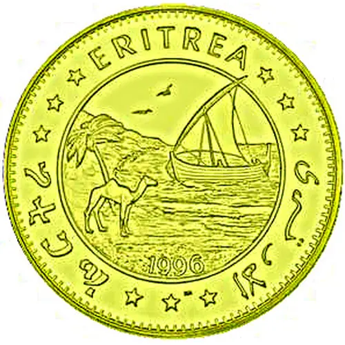 | Obverse lettering | ኤርትሪያ ★★★ ERITREA ★★★ الارتري ★★★ 1996 PM (Translation: Eritrea) |