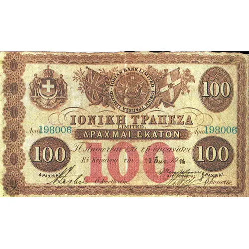 BANQUE IONIENNE LIMITED 100 FRANCS (Translation: IONIAN BANK LIMITED 25 FRANCS) |