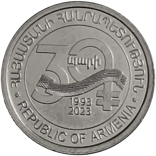 | Legenda do anverso | ՀԱՅԱՍՏԱՆԻ ՀԱՆՐԱՊԵՏՈՒԹՅՈՒՆ 3֏ 1993 2023 REPUBLIC OF ARMENIA (Translation: Republic of Armenia) |