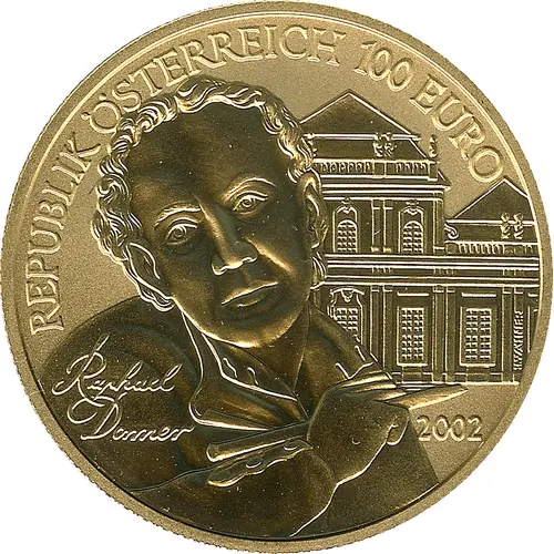 | Obverse lettering | REPUBLIK ÖSTERREICH 100 EURO Raphael Donner 2002 |