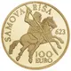 | Reverse description | The reverse features an imagined depiction of Samo galloping on horseback and holding a spear. Along the upper left edge is the inscription ‘SAMOVA RÍŠA’ (Samo’s Empire). To the right of the horse is the year ‘623’, and below it are the coin’s denomination ‘100’ and currency ‘EURO’, one above the other. |