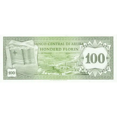 | Legenda do anverso | BANCO CENTRAL DI ARUBA HONDERD FLORIN 100 ARUBA JOH. ENSCHEDÉ EN ZONEN (Translation: Central Bank of Aruba One Hundred Florin 100 Aruba Joh. Enschedé and Sons) |