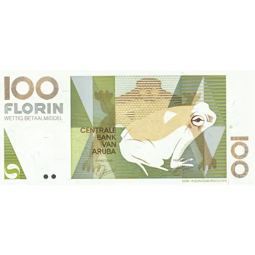 100 FLORIN WETTIG BETAALMIDDEL CENTRALE BANK VAN ARUBA DORI - PLEURODEMA BRACHYOPS (Translation: 100 florin Legal tender Central Bank of Aruba Dori - Pleurodema brachyops) |