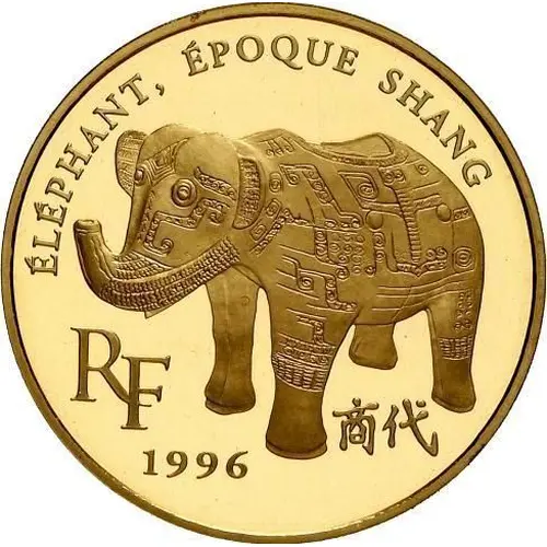 | Legenda del dritto | ELEPHANT, EPOQUE SHANG RF 1996 (Translation: Elephant, Shang Period French Republic) |