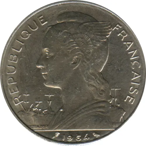 | Obverse description | Marianne head left, wearing a winged phrygian cap. 4 ships in the background. Date below. |