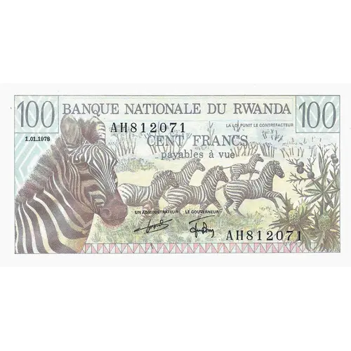 Obverse lettering Banque Nationale du Rwanda cent francs 1-01-1978