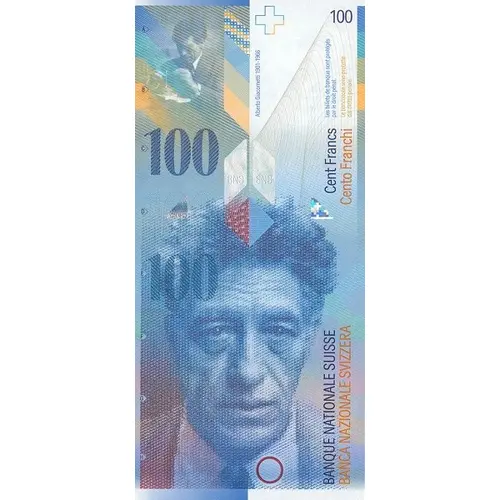 100 Alberto Giacometti 1901-1966 100 Les billets de banques sont protégés par le droit pénal. Le banconote sono protette dal diritto penale. Cent Francs Cento Franchi BANQUE NATIONALE SUISSE BANCA NAZIONALE SVIZZERA |