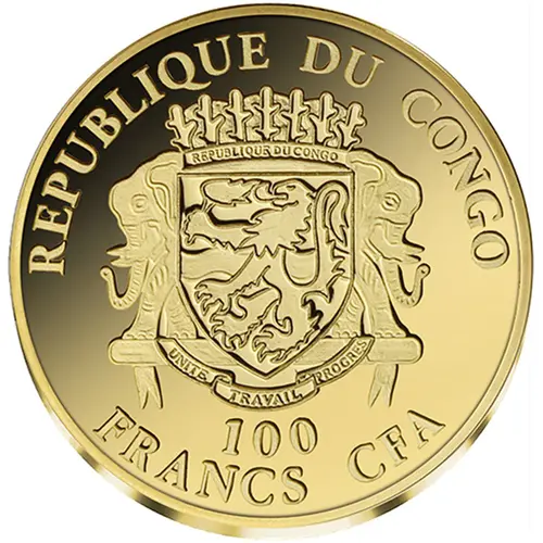 The obverse of the coin shows the Coat of Arms of the Congo, along with the inscriptions: `REPUBLIQUE DU CONGO` - the issuing country, `100 FRANCS CFA` - the face value. |