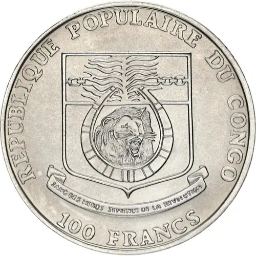 Obverse lettering REPUBLIQUE POPULAIRE DU CONGO 100 FRANCS
