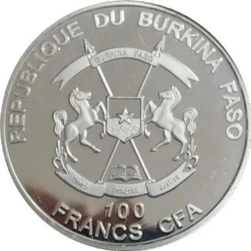 | Obverse lettering | REPUBLIQUE DU BURKINA FASO BURKINA FASO Unité Progrès Justice 100 FRANCS CFA |