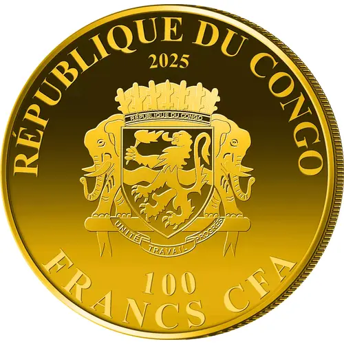 Obverse lettering REPUBLIQUE DU CONGO 2025 REPUBLIQUE DU CONGO UNITE TRAVAIL PROGRES 100 FRANCS CFA