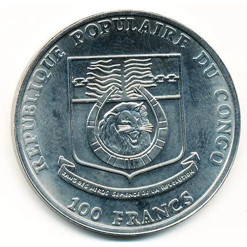 | Obverse lettering | REPUBLIQUE POPULAIRE DU CONGO 100 FRANCS (Translation: People`s Republic of Congo) |