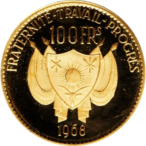 Technical/Grading: Struck in .900 fine gold, the 100 Francs Diori Hamani coin exhibits impressive technical qualities. For grading, collectors should examine the highest points of the design, typically the hair and cheekbone on the presidential portrait, and intricate details of any central emblem on the reverse. A strong strike is generally expected for such commemorative gold issues, resulting in sharp relief and full details. Well-preserved examples display excellent cartwheel luster across expansive fields.