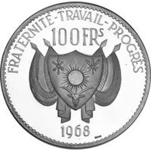 Historical Context: Issued in 1968, the 100 Francs Diori Hamani silver essai marks a pivotal moment in Niger's post-independence history. As the first President (1960-1974), Hamani Diori symbolized the nation's nascent sovereignty and its aspirations for stability. This essai, featuring the head of state, served as a powerful declaration of national identity and economic autonomy, underscoring the young republic's assertion of monetary authority following liberation from French colonial rule.