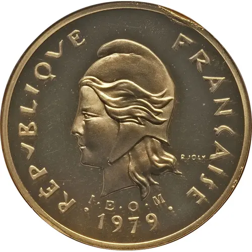 | Obverse lettering | RÉPUBLIQUE FRANÇAISE R JOLY I·E·O·M 1979 |