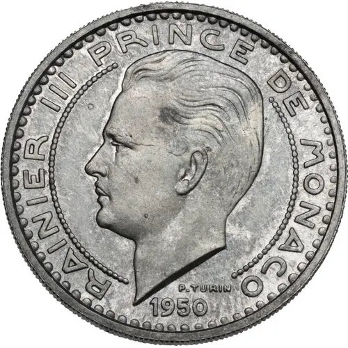 | Obverse lettering | RAINIER III PRINCE DE MONACO P. TURIN 1950 |