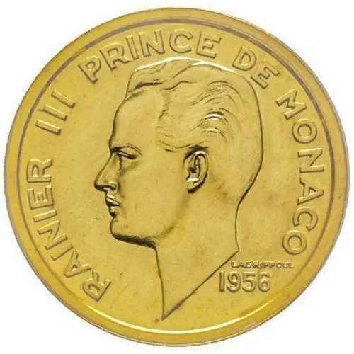 | Obverse lettering | RAINIER III PRINCE DE MONACO LAGRIFFOUL 1956 (Translation: Rainier III Prince of Monaco Lagriffoul 1956) |