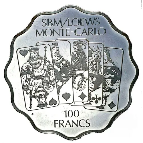 | Obverse lettering | SBM/LOEWS MONTE-CARLO 100 FRANCS |