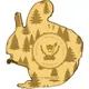 Coat of arms within round border, with country name above and date and value below. Surrounding are trees and animal footprints with weight and fineness below |