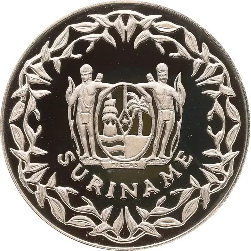 Opis líce SURINAME JUSTITIA PIETAS FIDES