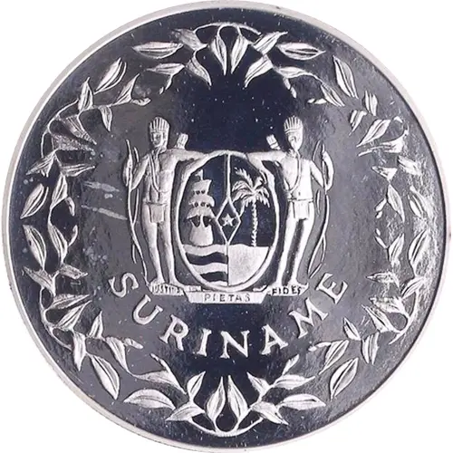 | Obverse lettering | JUSTITIA PIETAS FIDES SURINAME (Translation: Justice Piety Faith) |