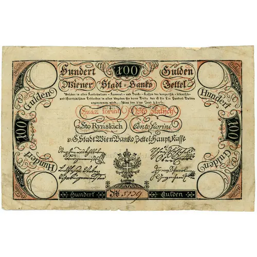 | توضیحات ویژگی امنیتی | `HUNDERT GULDEN`, `WIENER STADT BANCO ZETTEL`. |