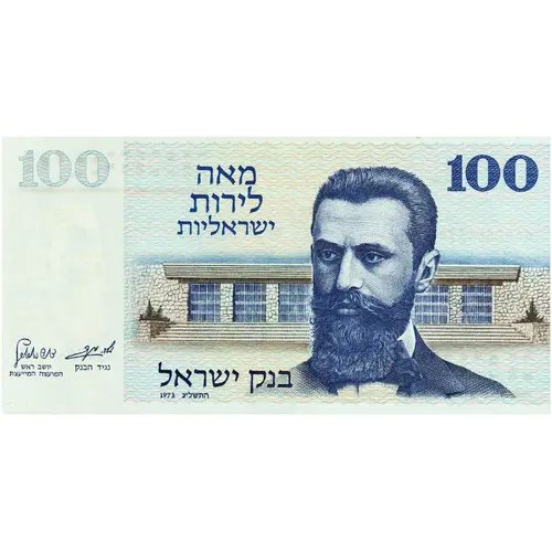 100 מאה לירות ישראליות בנק ישראל התשל`ג 1973 (Translation: One Hundred Israeli Pounds Bank of Israel) |