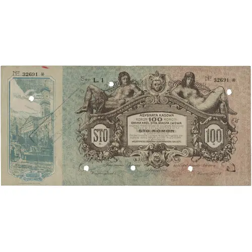 STO KORON Gmina król. Stoł. Miasta Lwowa (Translation: One Hundred Korona) |