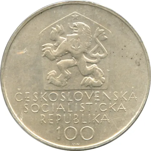 | 表面の銘文 | ČESKOSLOVENSKÁ SOCIALISTICKÁ REPUBLIKA 100 (Translation: Czechoslovak Socialist Republic) |