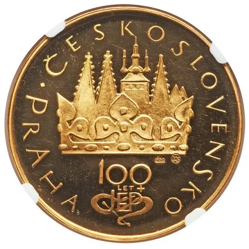| Obverse lettering | ČESKOSLOVENSKO 900 MK 100 LET JEP PRAHA |