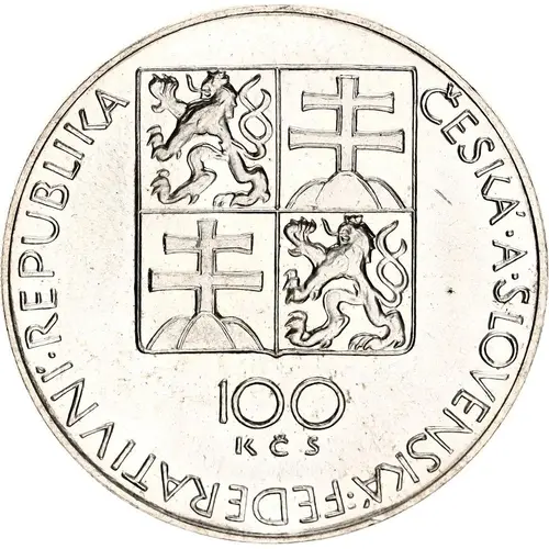 | Надписи аверса | ČESKÁ·A·SLOVENSKÁ·FEDERATIVNÍ·REPUBLIKA 100 KČS (Translation: Czech and Slovak Federative Republic) |