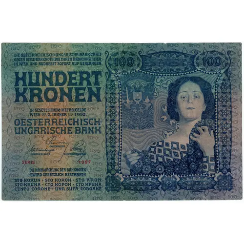100 HUNDERT KRONEN WIEN 2. JÄNNER 1910. OESTERREICHISCH- UNGARISCHE BANK KOLOMAN MOSER F. SCHIRNBÖCK |