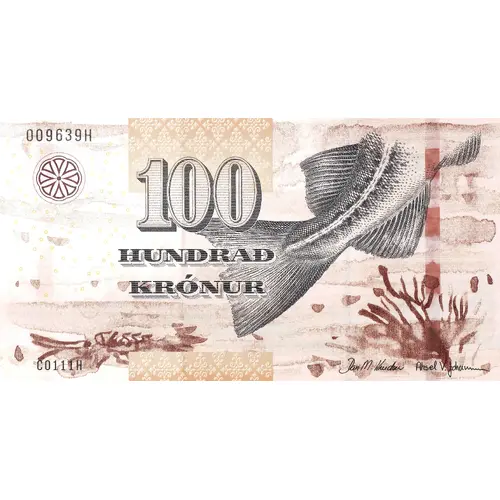 | Obverse lettering | 100 HUNDRAÐ KRÓNUR (Translation: One Hundred Krónur) |