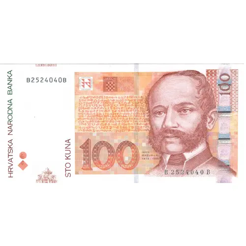 | Opschrift voorzijde | STO KUNA 100 HRVATSKA NARODNA BANKA (Translation: ONE HUNDRED KUNA 100 CROATIAN NATIONAL BANK) |