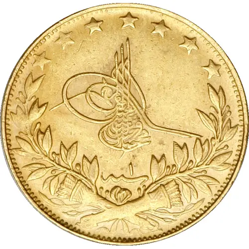 | Descripción del anverso | Toughra in center of sprigs and stars |
