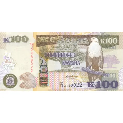 Obverse lettering BANK OF ZAMBIA HUNDRED KWACHA K100