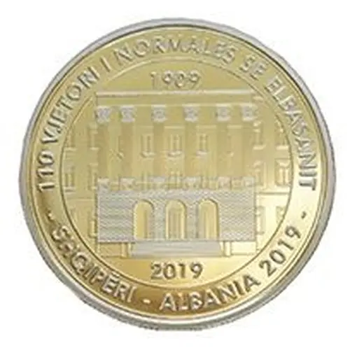 | Opis líce | 110-VJETORI I NORMALES SË ELBASANIT 1909 2019 SHQIPËRI - ALBANIA (Translation: 110th anniversary of the Normale school of Elbasan Albania) |