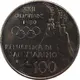 | Obverse description | Arms of San Marino in background behind inscription and Olympic logo. |