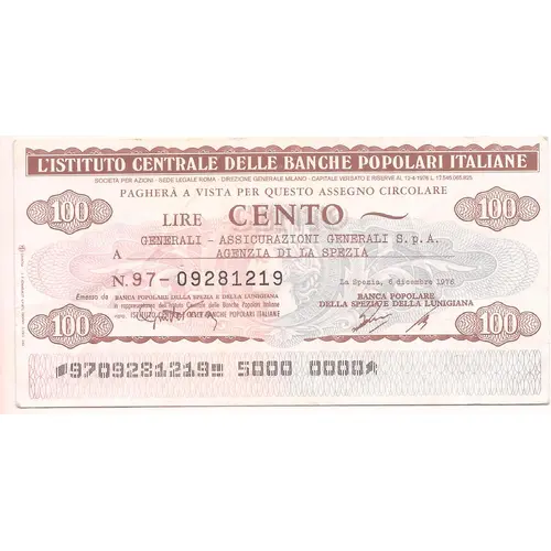 | Obverse lettering | L`ISTITUTO CENTRALE DELLE BANCHE POPULARI ITALIANE |